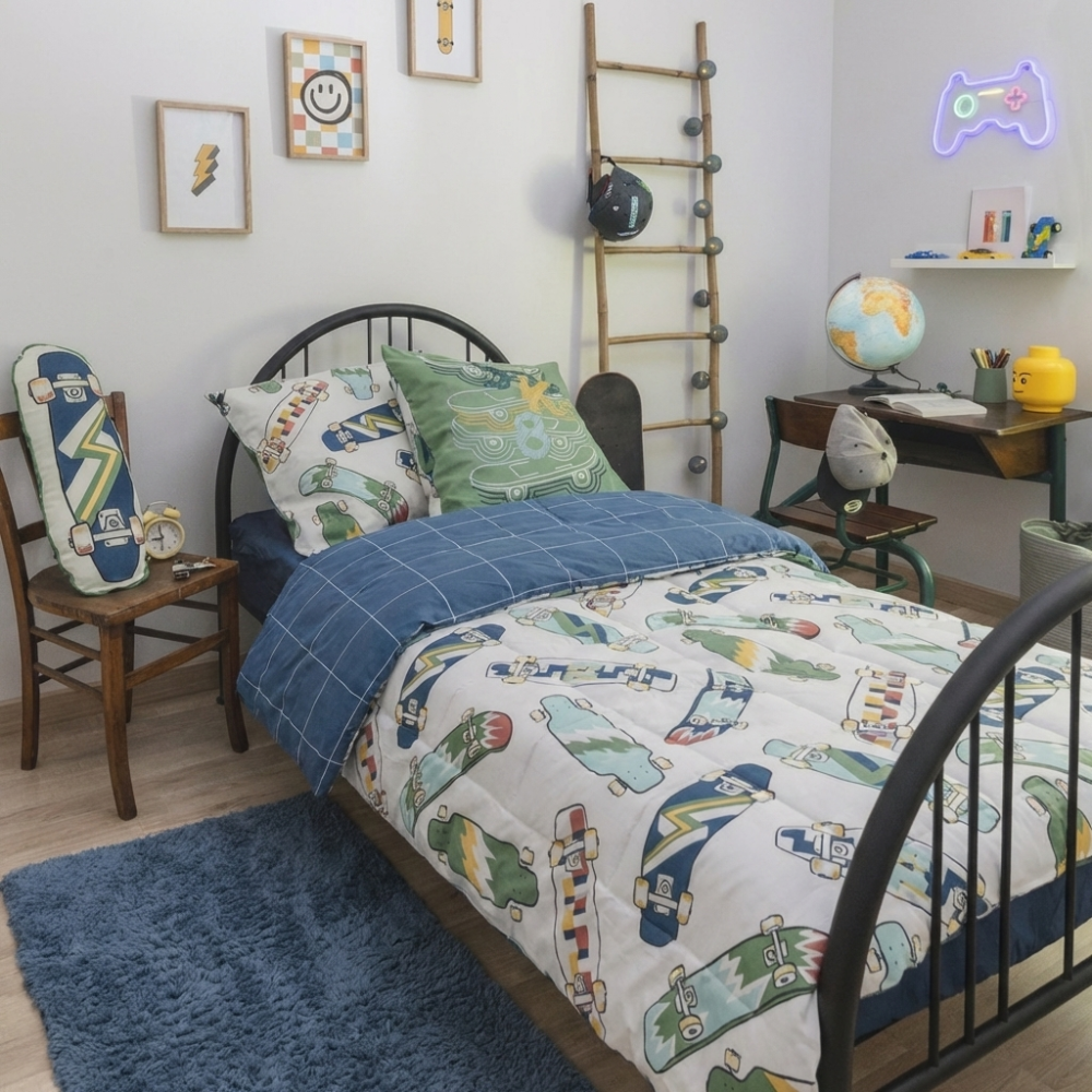 Couette imprimée Coton uni 140x200 cm comprenant : 1 Couette 140x200 cm + 1 taie d'oreiller 63x63 cm...