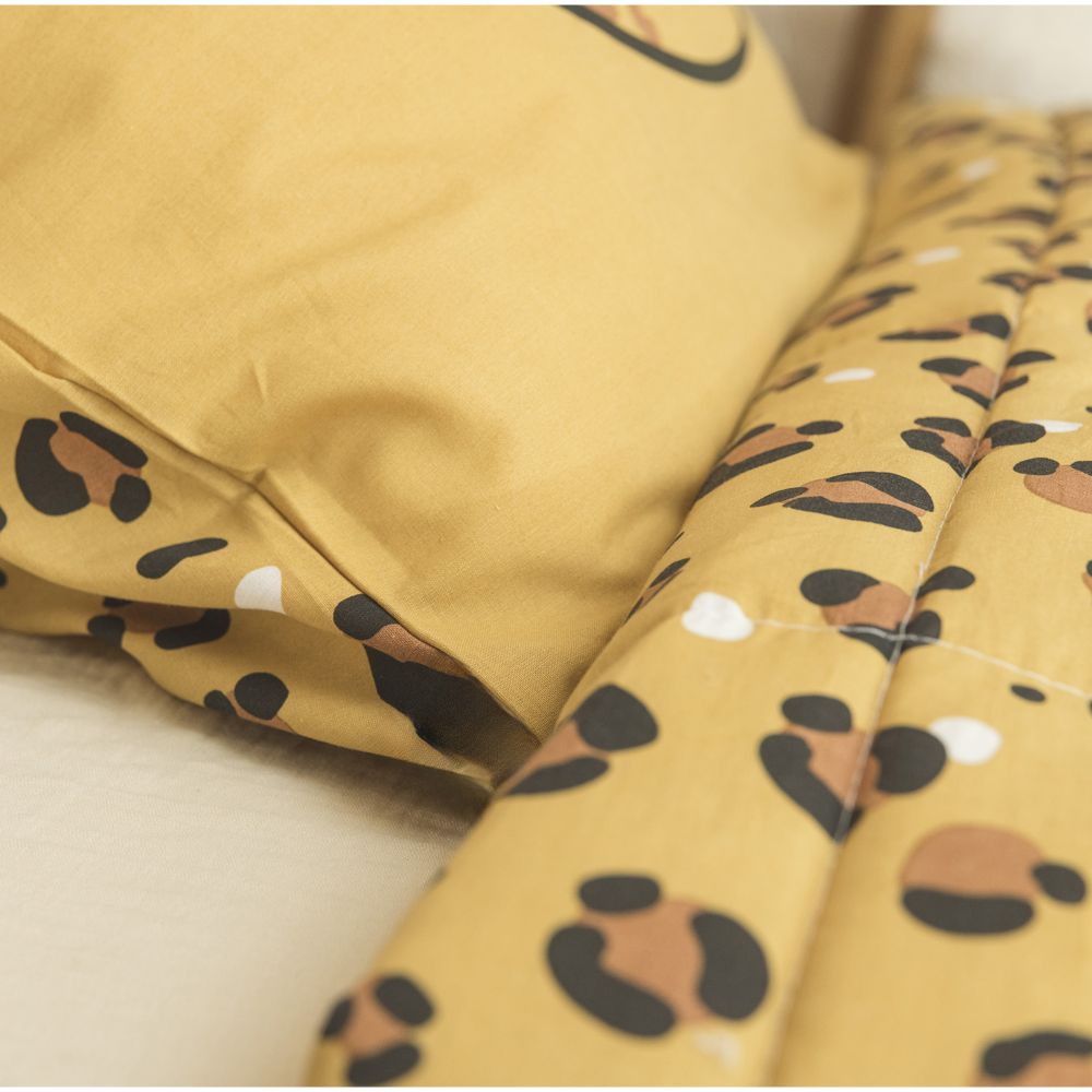 Enveloppe : 100% Coton 57 fils - Intérieur : 100% Polyester 300-350 gr/m² - 140x200 cm - Piquage carré - Lavable à 30° C - Pas de sèche linge - Pas de repassage
