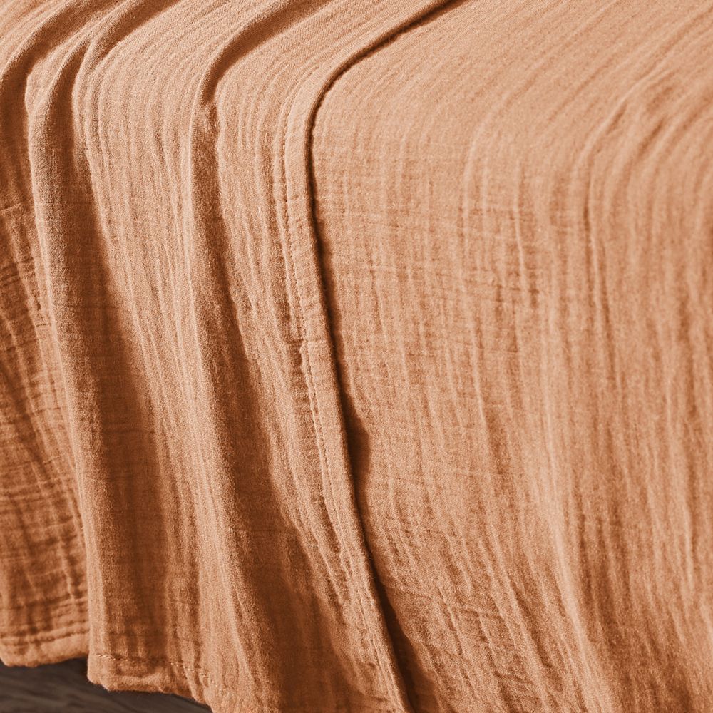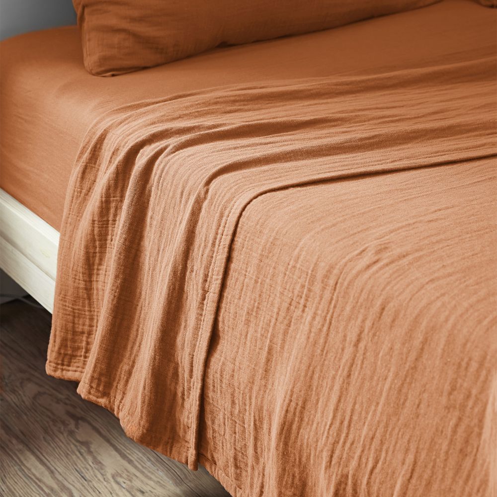 Drap plat 2 personnes 270x300 cm Gaze de Coton Terra Abricot en gros - demi-gros - dropshipping. Fournisseur de linge de lit au service des professionnels.