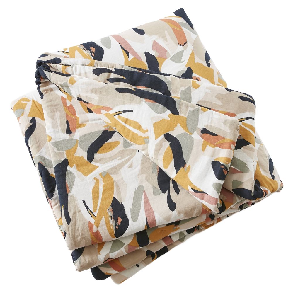 Enveloppe : 100% Coton Double gaze de coton 125 gr/m² - Garnissage : 100% Polyester 300 gr/m² - 90x200 cm - Passepoil - Lavable à 30°C (avec des couleurs similaires) - Essorage doux - Pas de sèche linge - Pas de repassage