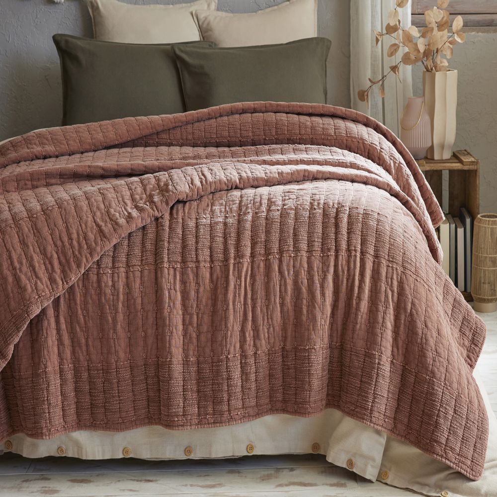 Couvre lit 2 personnes 240x260 cm Coton Zélie Terracotta en gros - demi-gros - dropshipping. Fournisseur de linge de lit au service des professionnels.
