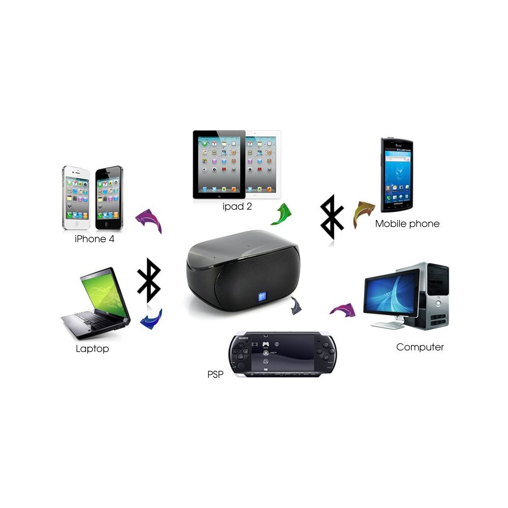 Enceinte Boombox portable tactile et élégante à prix discount. Connecter la facilement via bluetooth à votre smartphone, tablette, PC ou Mac. Ne vous fiez pas à sa taille, le haut-parleur 3W offre une excellente qualité sonore. Les touches tactiles éclairées en rouges vous permettent de contrôler le volume, lecture / pause, suivant / arrière et accepter les appels entrants. Vous pourrez donc l'utiliser facilement pour vos appels grâce à son micro intégré et pourrez accepter directement les appels entrant lorsqu'elle sera jumelée avec votre smartphone. Écouter de la musique dans votre bureau ou emporter la simplement avec vous au parc avec vos amis