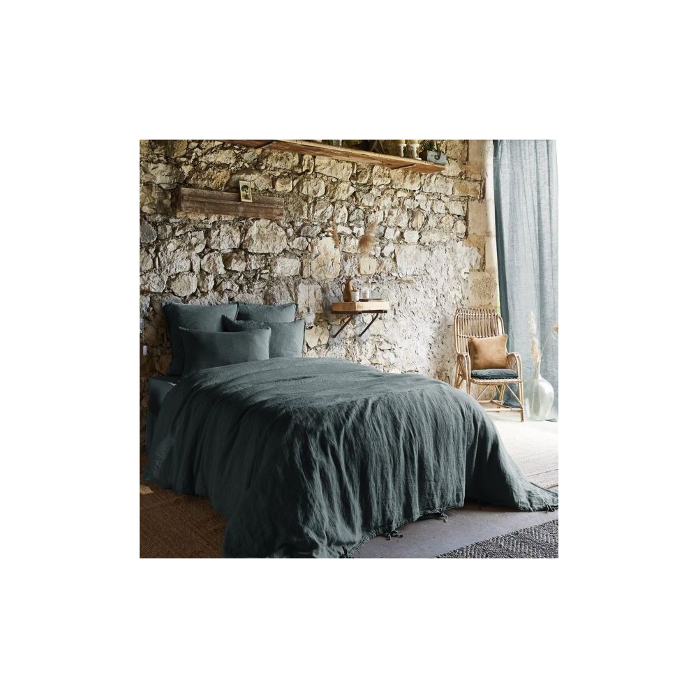 Housse de couette 1 personne 140x200 cm Lin Rosalie Ardoise en gros - demi-gros - dropshipping. Fournisseur de linge de lit au service des professionnels.
