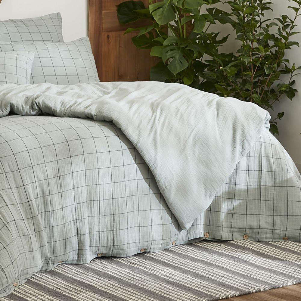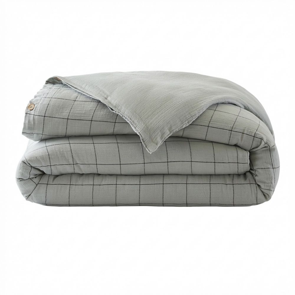 100% Coton Double gaze de coton 125 gr/m² - 200x200 cm Ouverture à boutonnières + boutons bois Lavable à 40° C (avec des couleurs similaires) - Essorage doux - Sèche linge possible - Pas de repassage