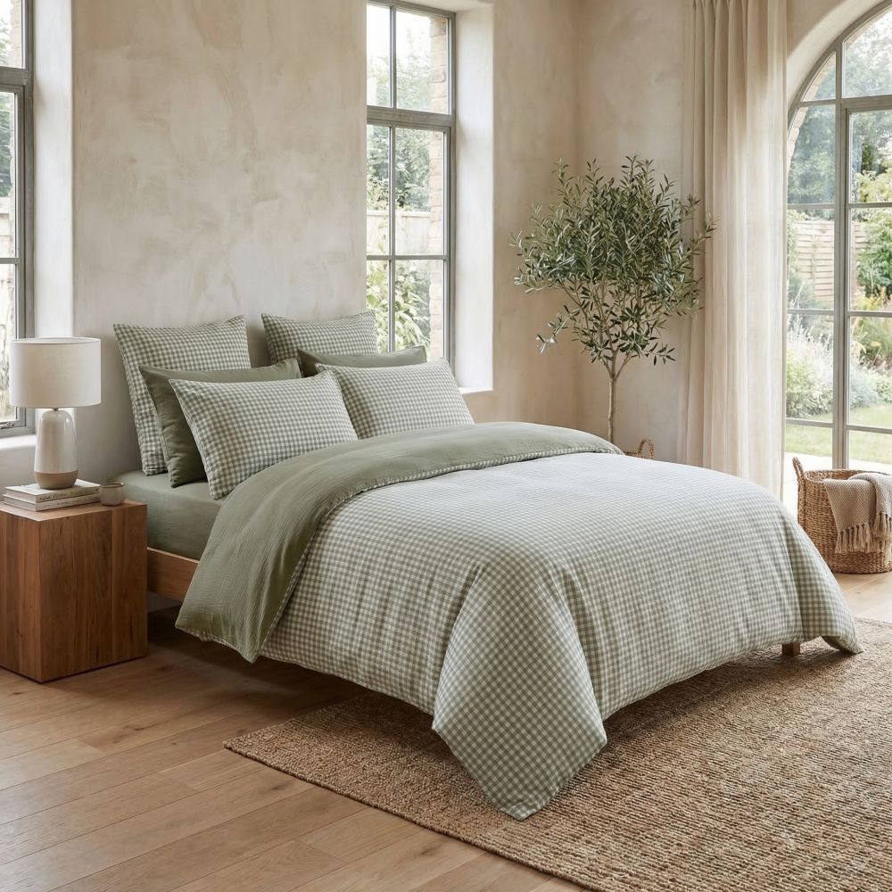 Housse de couette 2 personnes Reversible 240x260 cm Gaze de Coton Vickie Romarin en gros - demi-gros - dropshipping. Fournisseur de linge de lit au service des professionnels.