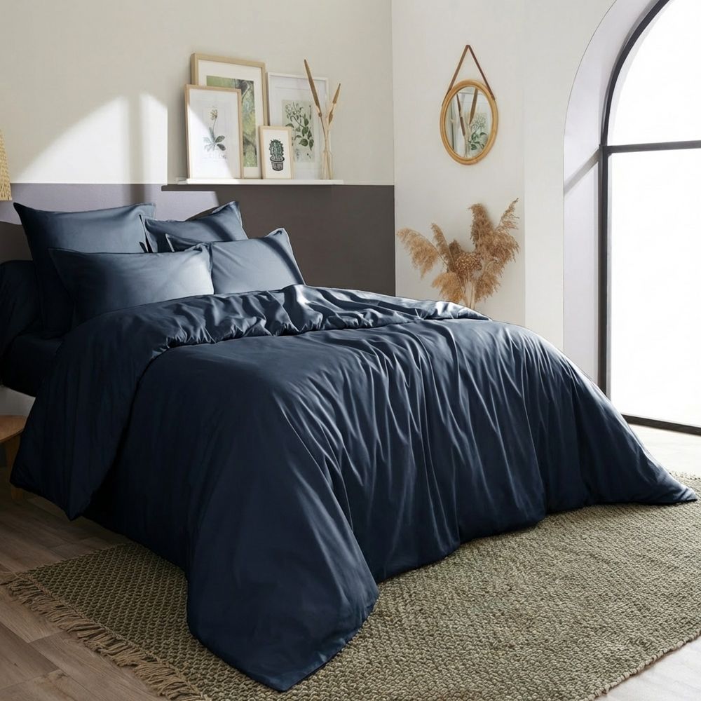 Housse de couette 1 ou 2 personnes 200x200 cm Percale de Coton Bleu Nuit en gros - demi-gros - dropshipping. Fournisseur de linge de lit au service des professionnels.