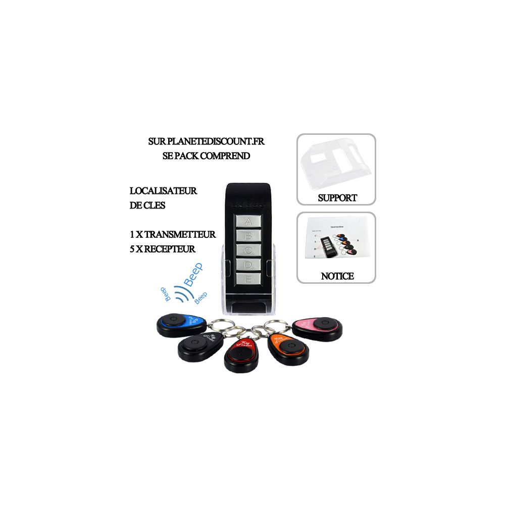 Offre Localisateur de clés avec 1 transmetteur et 5 récepteurs à prix grossiste. Achat Localisateur de clés en gros