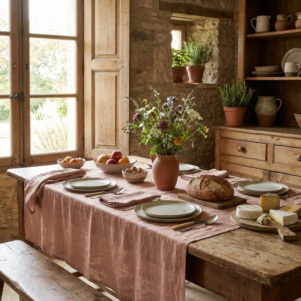 Nappe rectangle 170x350 cm Lin Rosalie Vieux Rose en gros - demi-gros - dropshipping. Fournisseur de linge de lit au service des professionnels.