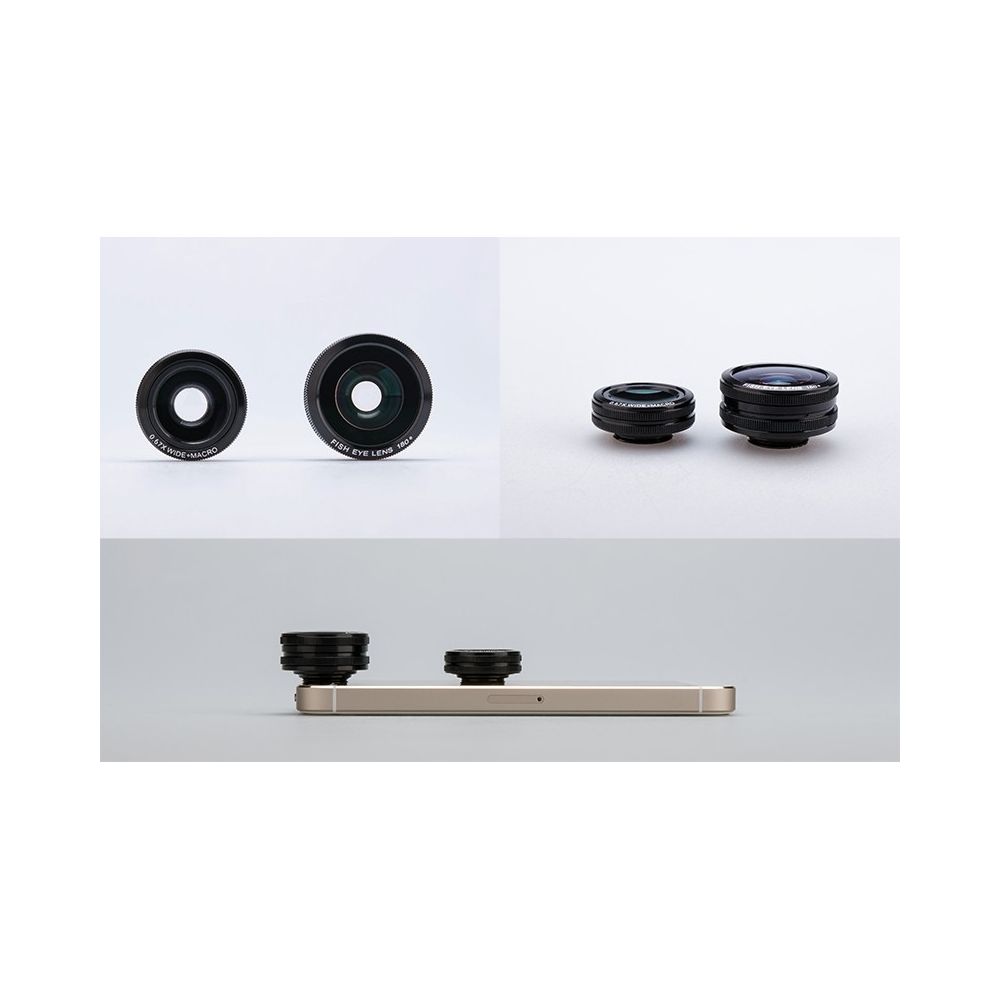 Ce kit d'objectif 3 en 1 est idéal pour les téléphones ou les tablettes disposant d'un appareil photo. Le kit contient un objectif Fisheye 180 degrés, un 0.67x Grand Angle et un objectif macro pour les smartphones...