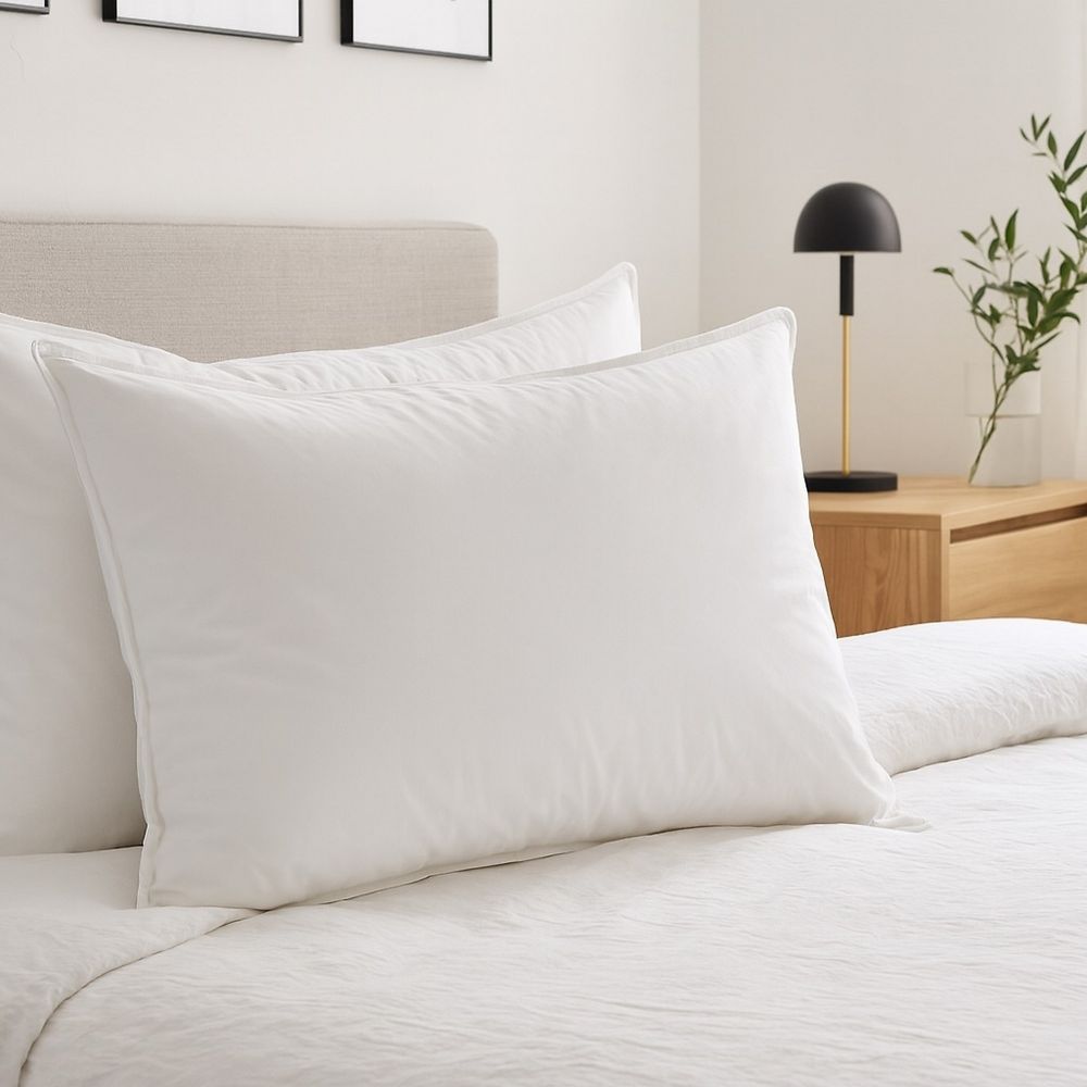 Lot 2 oreillers Coton et Plumes de canard uni 50x70 cm comprenant : 2 oreillers 100% Coton 50x70 cm...