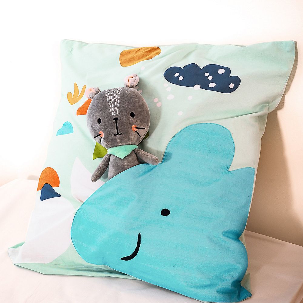 • 1 housse de couette 140x200 cm + 1 taie d'oreiller carrée