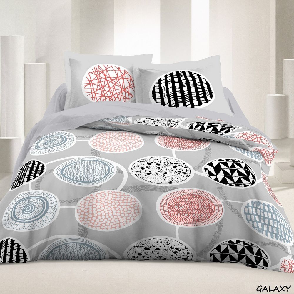 Parure housse de couette Galaxy Parure de lit en gros - demi-gros - dropshipping. Fournisseur de linge de lit au service des professionnels. Parure de couette Matière : 100% Coton 57 fils 220x240 cm Galaxy - 1x housse de couette + 1x ou 2x taies d'oreiller.