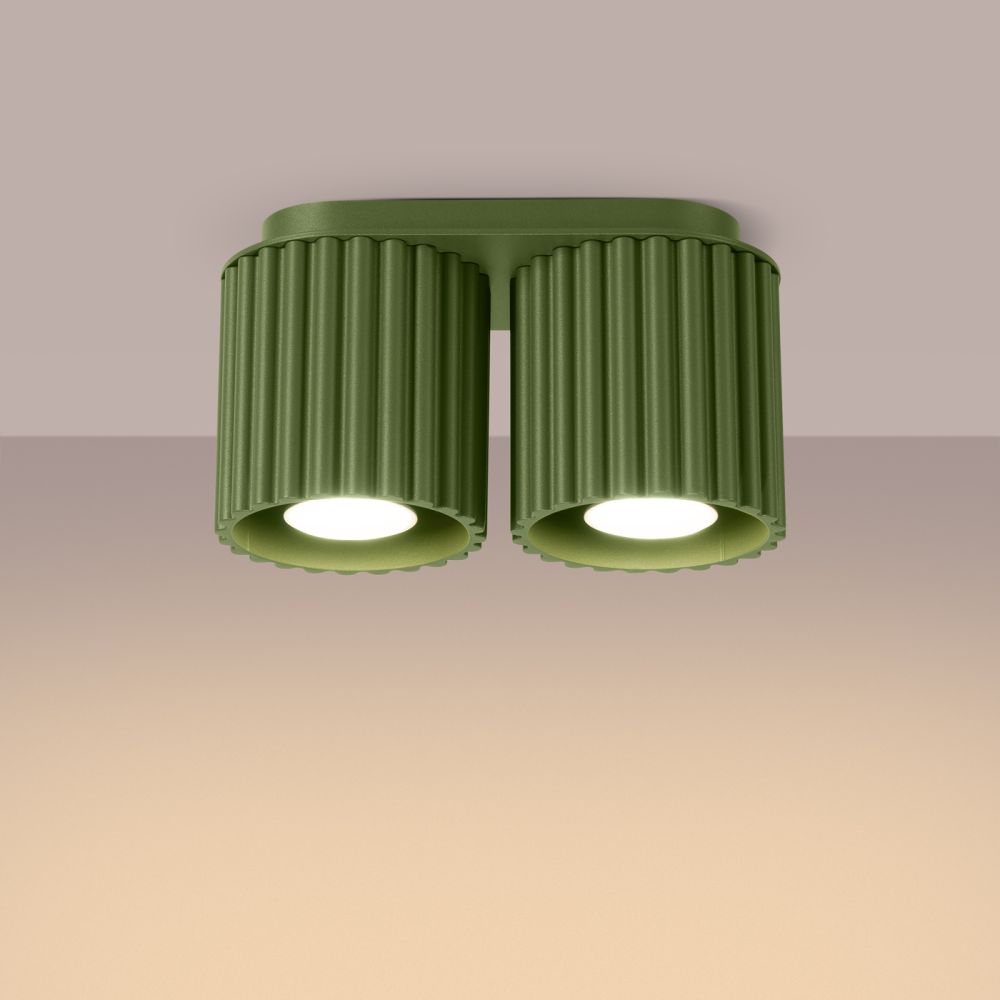 Plafonnier Aluminium Vert Olive GU10 2 Aura en gros - demi-gros - dropshipping. Fournisseur de luminaire au service des professionnels.
