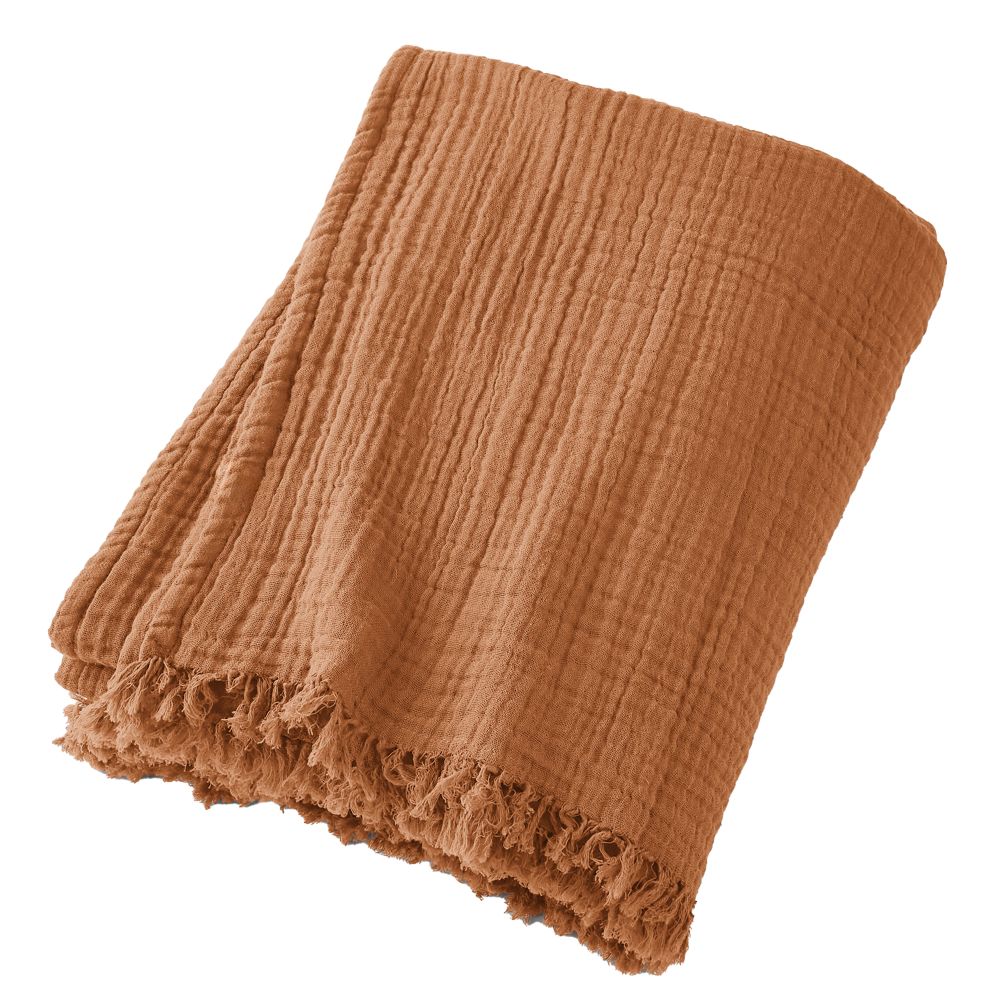 Plaid 1 personne 130x160 cm Gaze de Coton Terra Abricot en gros - demi-gros - dropshipping. Fournisseur de linge de lit au service des professionnels.