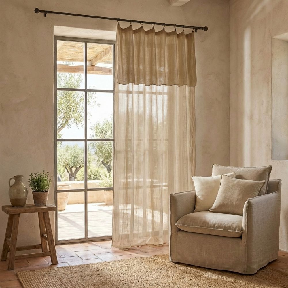 Rideau ajustable Gaze de Coton uni 140x300 cm comprenant : 1 Rideau ajustable 140x300 cm...