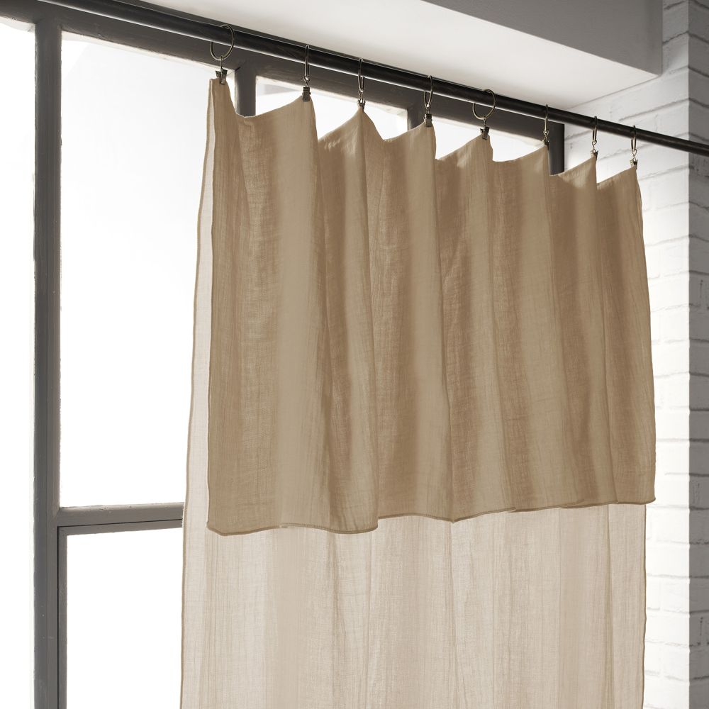 100% Coton Double gaze de coton 125 gr/m² - 140x300 cm - 8 anneaux pince - Point bourdon ton sur ton Lavable à 40° C (avec des couleurs similaires) - Essorage doux - Sèche linge possible - Pas de repassage