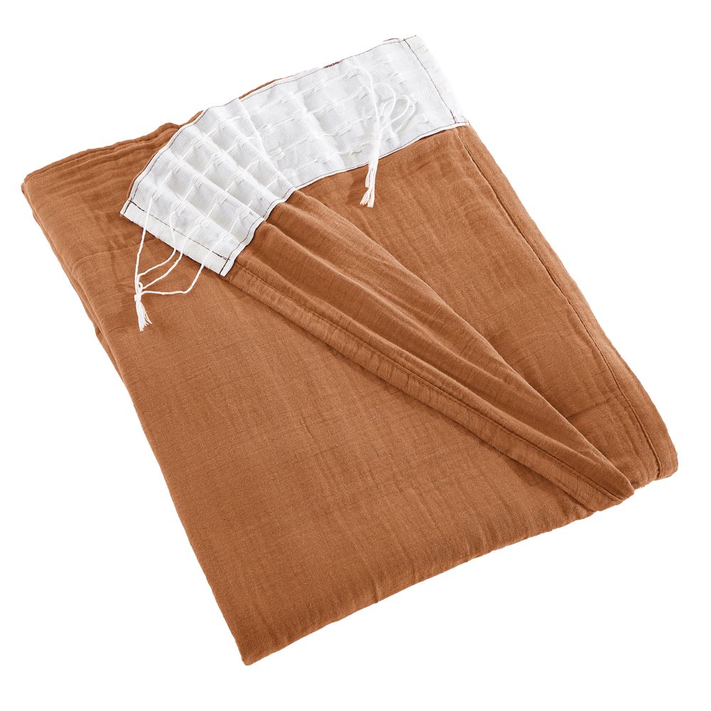 100% Coton Double gaze de coton 125 gr/m² - 140x240 cm Point bourdon ton sur ton Lavable à 40° C (avec des couleurs similaires) - Essorage doux - Sèche linge possible - Pas de repassage
