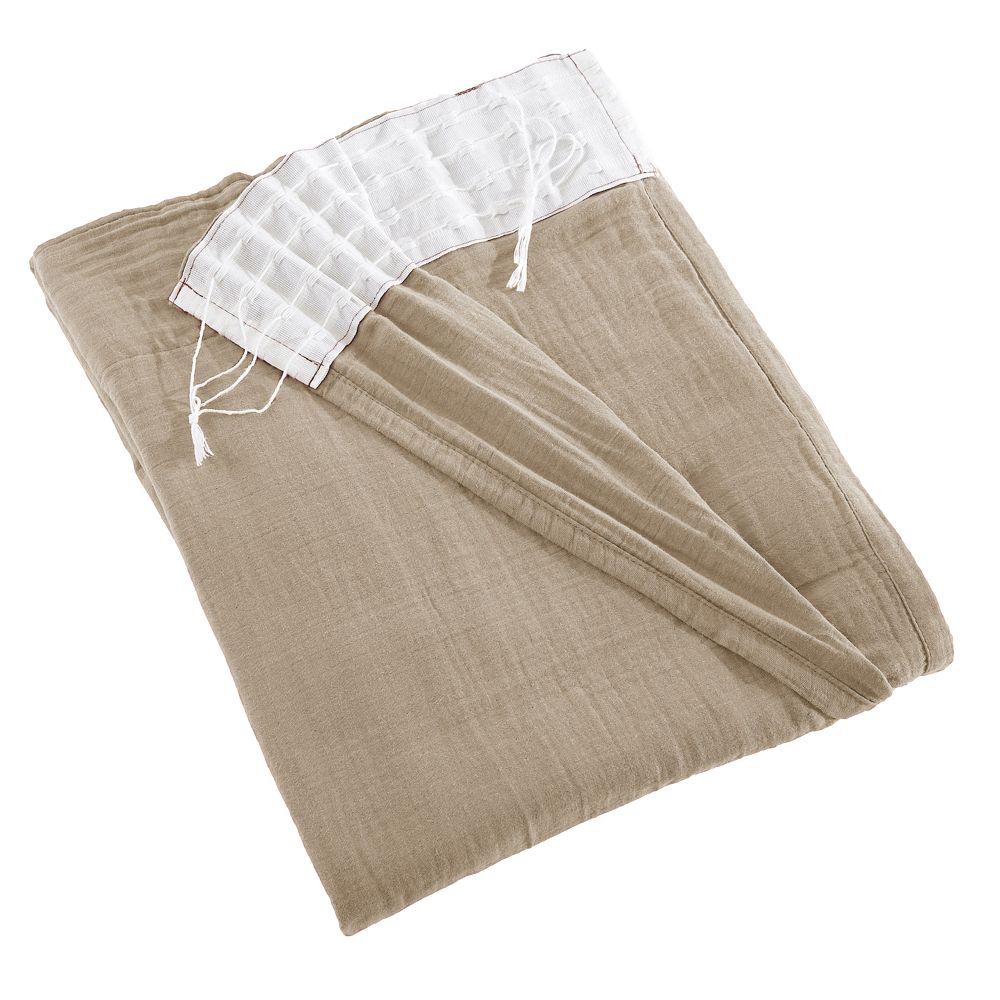100% Coton Double gaze de coton 125 gr/m² - 140x240 cm Point bourdon ton sur ton Lavable à 40° C (avec des couleurs similaires) - Essorage doux - Sèche linge possible - Pas de repassage