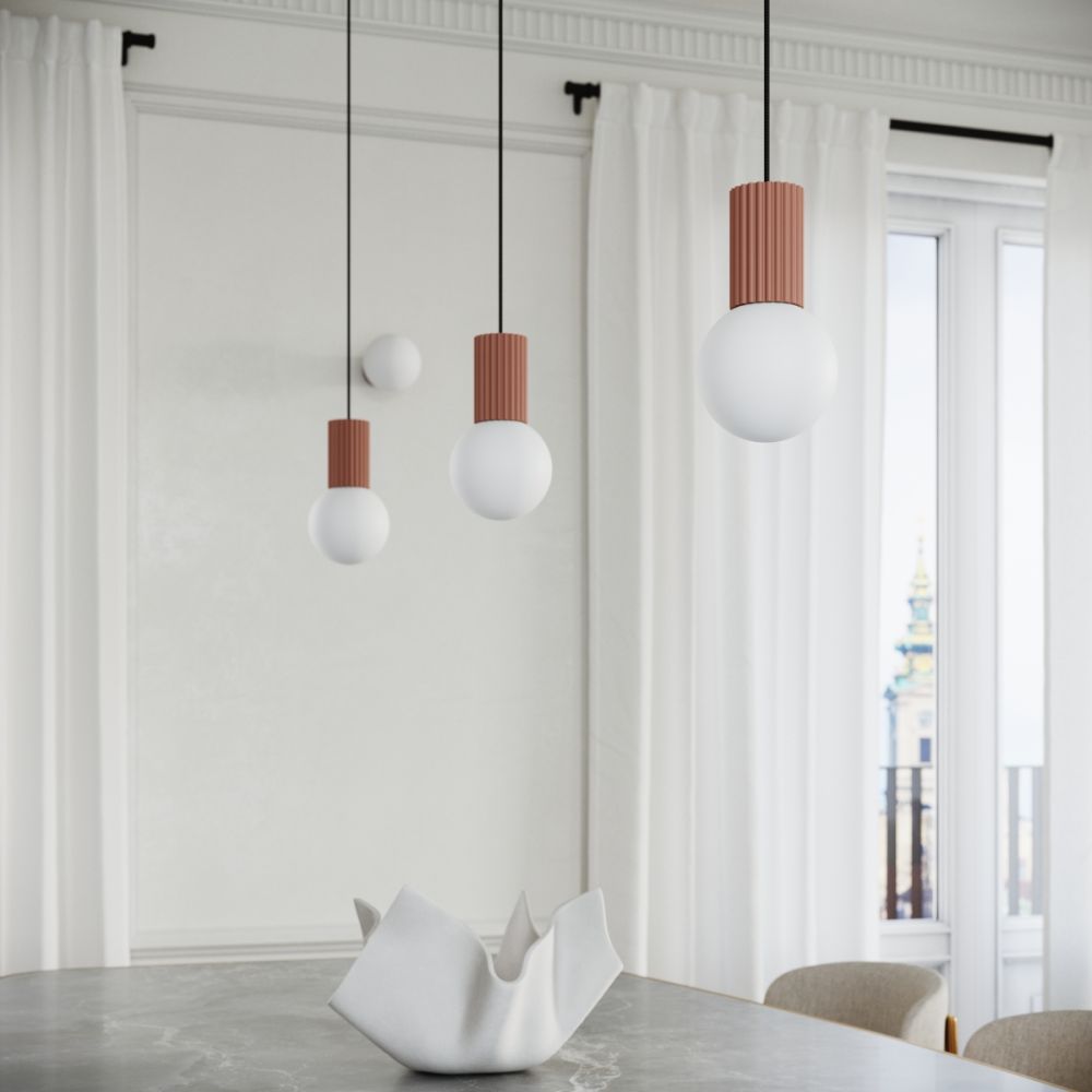 Découvrez HALO - une lampe conçue pour devenir la pièce maîtresse de votre intérieur. Elle attire l'attention par sa forme distinctive et son corps cannelé, qui, associés à un globe opale mat, forment un duo intemporel. Disponible en tant qu'applique murale, plafonnier, suspension simple ou triple et lampe de bureau, HALO offre une totale liberté d'agencement et s'intègre parfaitement dans tous les espaces. Sa palette de couleurs est un véritable festin visuel : du noir et blanc classique au vert olive et au rouge ocre, en passant par de nouvelles teintes audacieuses - bordeaux, taupe, mocca, pêche et outremer profond. HALO est plus qu'un simple éclairage - c'est une déclaration de design qui apporte de l'atmosphère, de la personnalité et du caractère à votre espace.