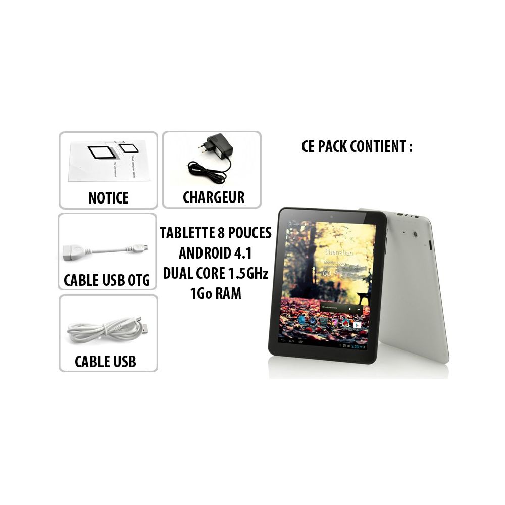 - Type : Tablette Android 4.1 de 8" avec CPU dual core de 1.5 GHz