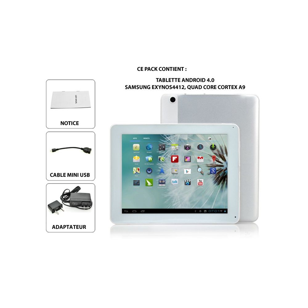 - Type : Tablette Android 4.0 de 9.7" avec CPU Quad Core de 1.6GHz