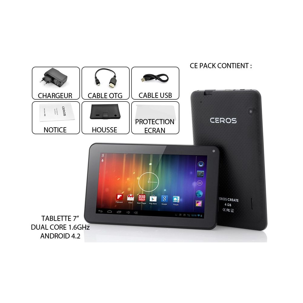 - Type : Tablette Android 4.0 de 7" avec CPU Dual Core 1.6GHz